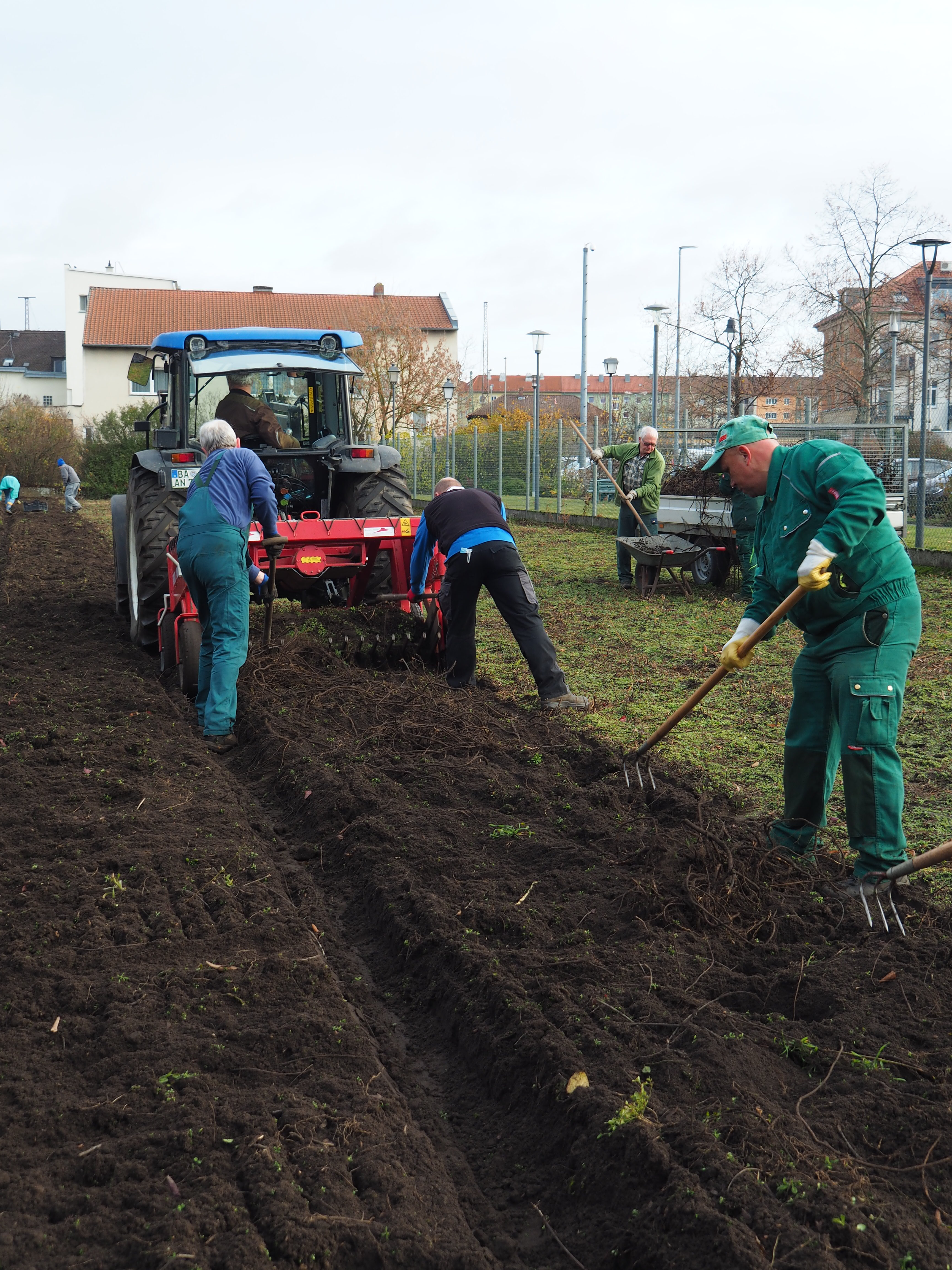 Am 17. November war es soweit! Eine Hälfte des Süßholzfeldes in der Heiliggrabstrasse wurde geerntet. 5 Jahre hatten die süßen Wurzeln nach der letzten Ernte Zeit, um wieder nachzuwachsen. Nun wurden sie mit Hilfe eines Rüttelroders und eines sehr versierten Fahrers wieder ans Tageslicht geholt. Rasch aufgelesen wurden die wertvollen Wurzeln von ehrenamtlichen HelferInnen der Bamberger Süßholzgesellschaft und in diesem Jahr gleich mit 2 Gartenteams der Lebenshilfe Bamberg!!! Da saß wieder jeder Handgriff und unter Einhaltung aller aktuellen AHA Regeln ist nun wieder für Nachschub des begehrten Bamberger Süßholzes gesorgt.